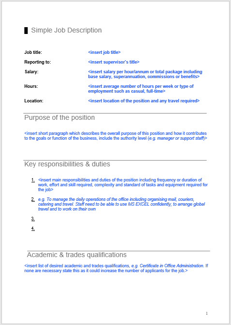 Job Description Writing Template Free Word Templates from www.wordstemplates.org The personnel specification refers to a description of the qualifications, skills, knowledge, experience along with other attributes under the selection criteria which must be possessed by the candidates to perform the job duties. You want a letterhead that emphasizes your organization instead of just you. The more clear, organized and thorough your job specification is, the better job candidates will understand what you're looking for in an employee. Your job descriptions are where you start marketing your company and your job to your future hire. Optimized for job board approval and seo, our 700+ job description templates boost exposure, provide inspiration and speed up hiring. Example of job specifications with letterhead. Including one will make any document look professional and help keep your branding consistent. Example of job specifications with letterhead a letterhead is a formatted heading that appears at the top of every page of documentation you're working on.